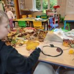 L’automne est une belle saison qui nous permet de travailler et de découvrir beaucoup de choses. Nous sommes partis nous balader afin d’observer la nature, mais aussi d’aborder les différentes quantités grâce aux éléments de la nature. De retour en classe, nous avons travaillé dans des ateliers sur l’automne, fait de l’art plastique avec des feuilles, trier les objets…