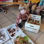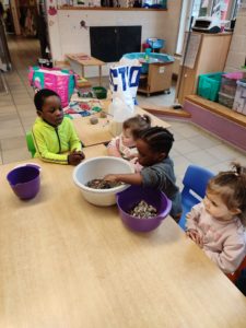L’automne est une belle saison qui nous permet de travailler et de découvrir beaucoup de choses. Nous sommes partis nous balader afin d’observer la nature, mais aussi d’aborder les différentes quantités grâce aux éléments de la nature. De retour en classe, nous avons travaillé dans des ateliers sur l’automne, fait de l’art plastique avec des feuilles, trier les objets…