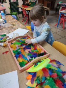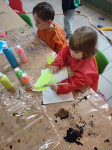 Cette année, nous avons mené un projet sur les couleurs. L’occasion pour certains de découvrir les couleurs, de nommer les couleurs, de découvrir les couleurs primaires et secondaires, de faire des mélanges de couleurs… un grand projet artistique.
