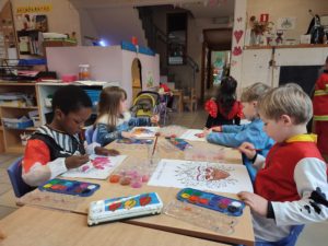 -Activités de peinture sur le carnaval et découverte de la peinture d’aquarelle pour certains.